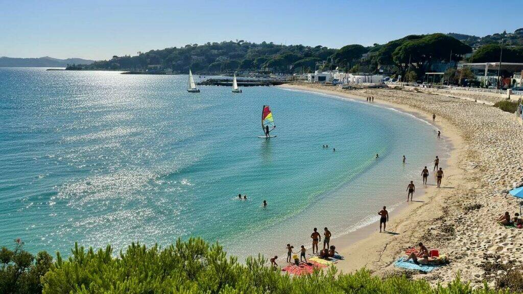 La plage de la Croisette à Sainte-Maxime est une plage emblématique du littoral, connue pour son panorama exceptionnel sur le golfe de Saint-Tropez et ses eaux scintillantes.